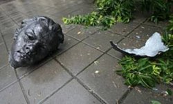 И Господь Бог, не медля, подтвердил великими и чудными знамениями духовную победу Православия в архиерейском Обращении Преосвященного Диомида от 4 (17) июля 2008 года. В первую же ночь с 17 на 18 июля в Москве была небывалая гроза. И вот молния и вихрь повалили дерево на памятник В.И.Ленина в облике гимназиста в переулке Огородная Слобода. Идол ВИЛа упал, расколовшись на три части: у него отвалились ноги и голова (cao-tv.ru).