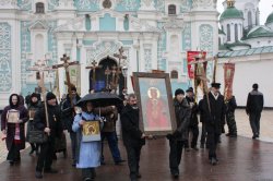 В воскресный день в Киеве состоялось православно-патриотическое шествие в честь праздника иконы Божией матери Державная. В нем приняли участие более 1000 активистов православно-патриотических объединений: Всеукраинской общественной организации "Православный выбор", Союза Православных Братств Украины, Киевской организации СРН, "Войска верных казаков Черноморских им. А.Суворова", общественной организации "Русское содружество", "Союза верных казаков" и других казаческих и православно-патриотических организаций Украины. Участники шествия прошли с иконами Божией Матери, хоругвями и православно-патриотическими флагами, от Киево-Печерской Лавры по центральным улицам Киева. Возле палаточного храма Александра Невского, расположенного рядом с Верховной Радой, а также возле Мариинского дворца служили праздничные молебны. Завершилось православно-патриотическое шествие традиционно на площади перед Софиевским собором, где читали акафист иконе Божией матери Державная.