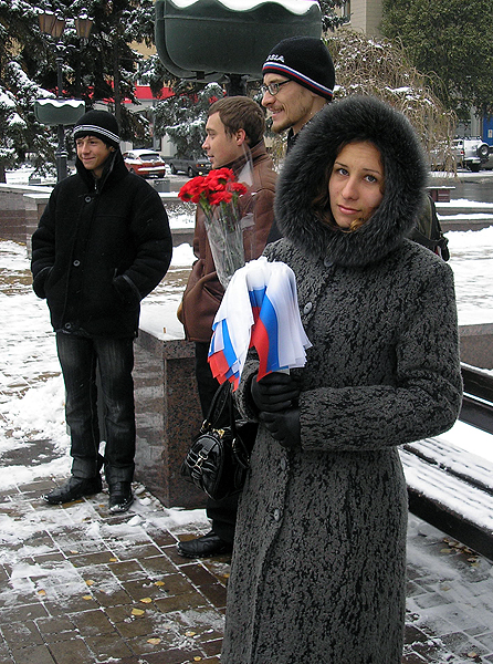 С утра около памятника Пушкину встретились представители русских организаций и неравнодушные горожане, чтобы возложить цветы к бюсту поэта. С речью перед собравшимися выступили историки Алексей Иванов и Сергей Барышников. Они рассказали о возникновении праздника и отметили связь событий семнадцатого века с современностью.
